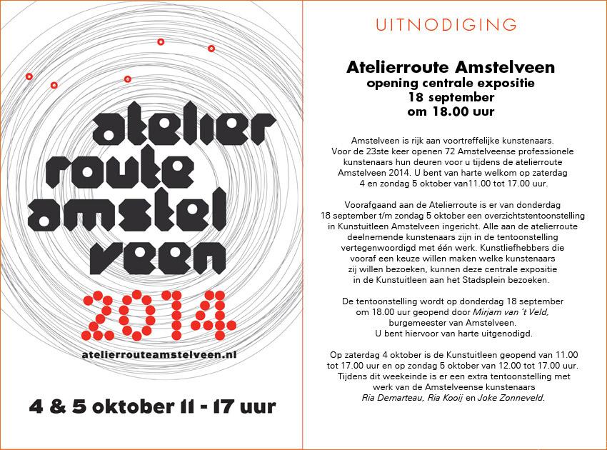 Het is bijna weer zover: in het weekend van 4 en 5 oktober 2014 is de Open Atelierroute Amstelveen.